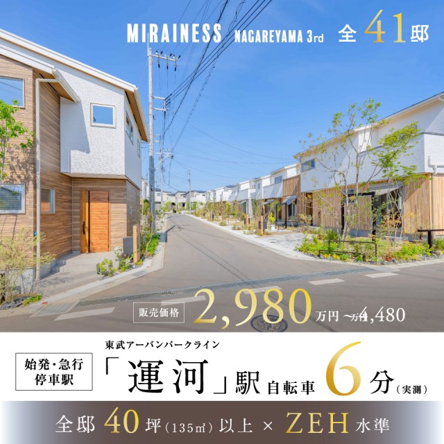 流山市に誕生する全41邸の「ミライネス流山 3rd」