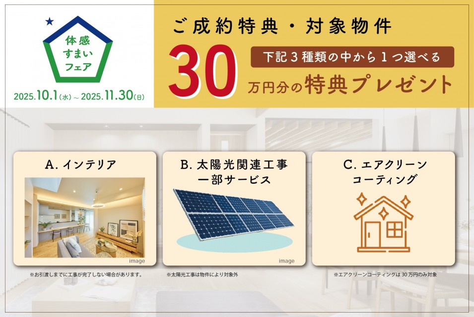 【2026年3月20日(金)まで】体感すまいフェア開催中!契約特典30万円分対象分譲地