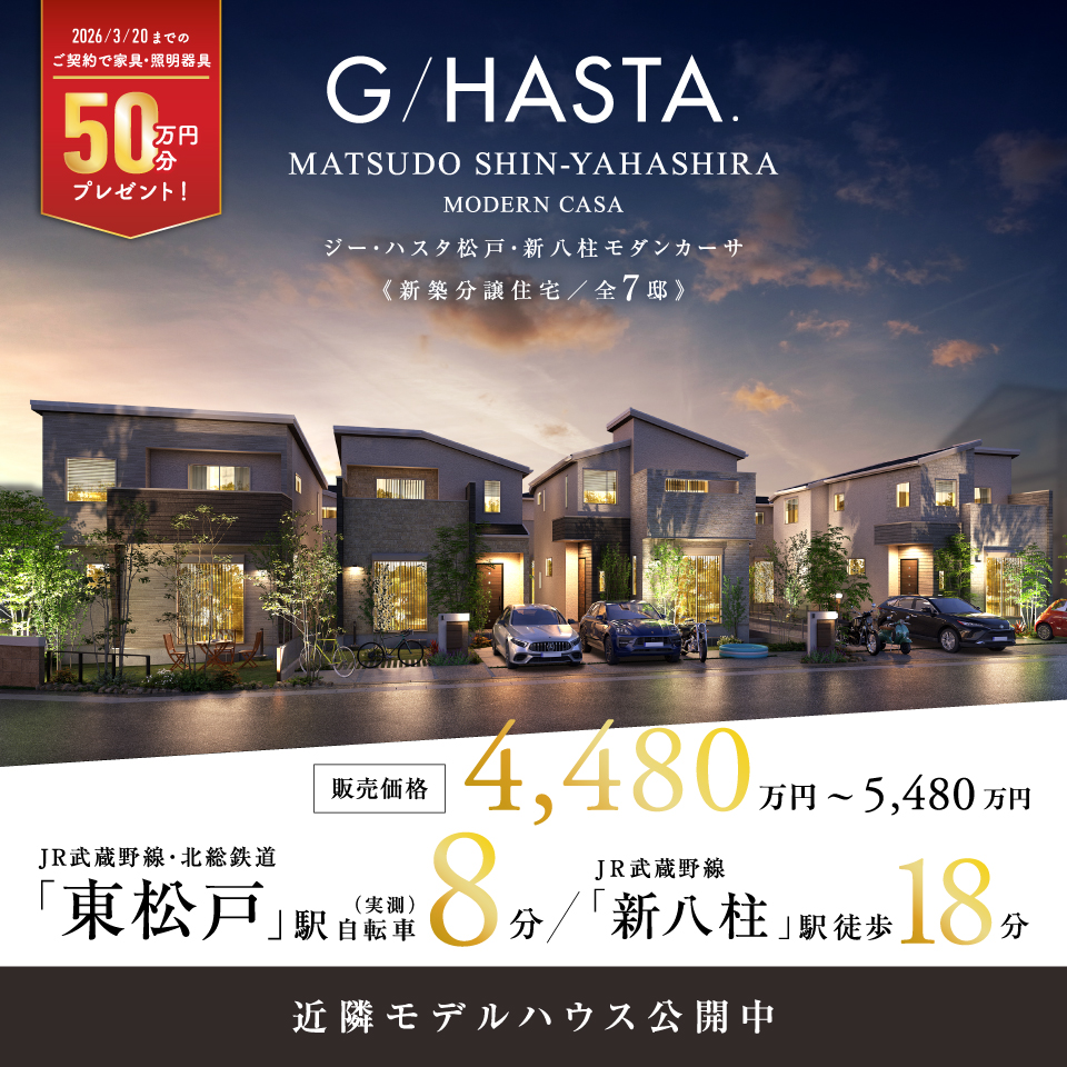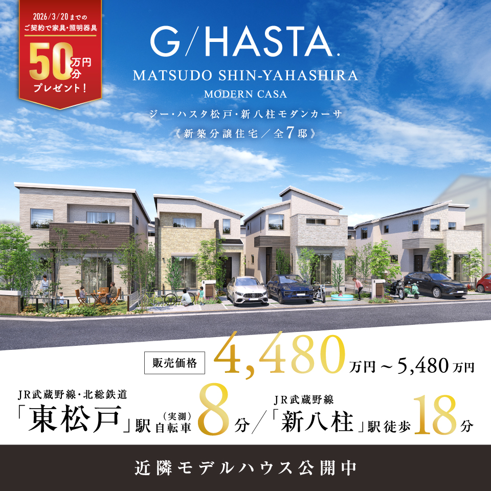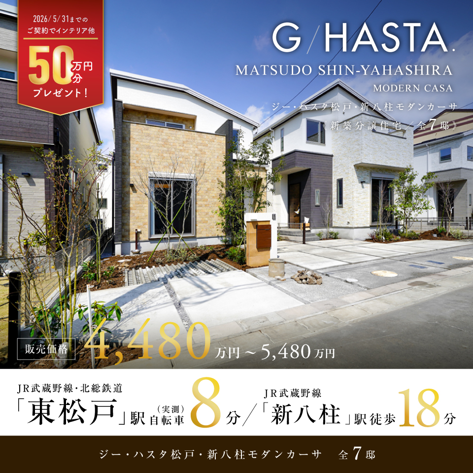 ポラスの新築分譲住宅 ジーハスタ松戸・新八柱モダンカーサ
