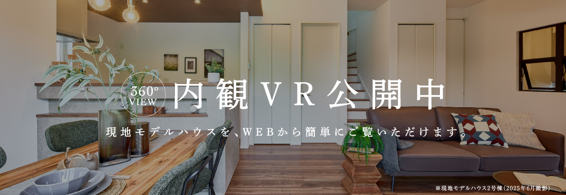 ご自宅にいながら、まるで実際にモデルハウスを見学しているかのような臨場感を味わえるVR体験。360度パノラマビューで、間取りやインテリア、日当たりなどを隅々までチェックできます。暮らしをリアルに想像できるのでぜひご覧ください。