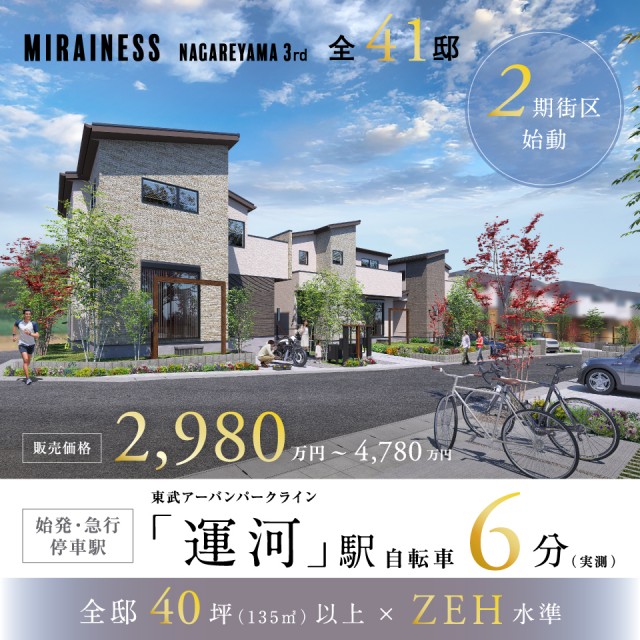 流山市に誕生する全41邸の「ミライネス流山 3rd」